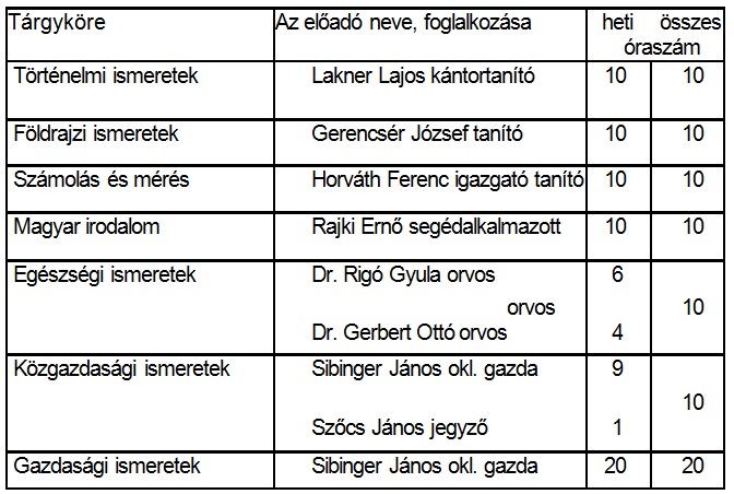 Az előadásokról és előadássorozatokról így ír az 1948-ban kiadott: A szabadművelődés kézikönyve: "Az ismeretközlés legegyszerűbb és legáltalánosabban használt formája az egyszeri előadás... Ha az ismeretanyag nem fér bele egyetlen előadás keretében, előadássorozat is rendezhető. Egymáshoz lehet azonban fűzni különböző tárgyú előadásokat, ha valamiképpen közös szempont alá foglalható."/53./ A szabadművelődési irányzat rendkívül sok munkát fordított az ismeretterjesztésre, valamint az ismeretterjesztés rendszerének kiépítésére. Munkájuk ezen a téren is elsősorban a parasztságra koncentrálódott. A szabadművelődés iskolarendszerű ismeretterjesztésének, de a tanfolyamoknak és az előadásoknak is az volt a célja, hogy a rendkívül alacsony műveltségi szintet emeljék, a magasabb művelődés feltételeit megteremtsék. Ahogy irodalmi és művészeti életünkben is tovább éltek a polgári, kispolgári irányzatok, úgy az ismeretterjesztésben is teret kapott az elavult tudásanyag. A szabadművelődés politikájában, és ismeretanyagában is kifejeződött az az állapot, amely a koalíciós viszonyokat jellemezte. Bár háttérbe szorult a szélsőséges nacionalista és a nyíltan reakciós kultúrpolitika, de továbbra is érvényesült a polgári ideológia hatása. /54./ Mindezek természetesen tükröződnek az előadások címében, témájában is. Az előadásokat, előadássorozatokat többnyire a téli időszakban tarolták, Már 1945/46. telén megkezdődött az ismeretterjesztő munka. Az előadásokat a Helyi Szabadművelődési Tanács szervezte, ők állították össze a programot is. Az 1945/46-OS tanév előadásai: /55./ Az 1945. november 28-i jelentésből tudhatjuk meg, hogy az előadások helye a római katolikus iskola, valamint hogy addig 12 közműveltségi előadást tartottak. Az előadások 1946. január 7-től február 15-ig tartottak. Valamennyi este 7 órakor volt. A tervezet a témákat tekintve nagyon tarka képet mutat. néhány cím ennek illusztrálására: Keresztény demokrácia, Emberi jogok és kötelességek, Helyes táplálkozás, Az ipari növények termesztése, stb. Az előadó minden esetben helyi volt, de a témáknak megfelelően szinte mindig más és más. Tartott előadást a plébános, a jegyző, az orvos, az állatorvos és több tanító. Az ő nevükkel már az előzőekben is találkozhattunk, hiszen a művelődés összes területén tevékenykedtek. Előadás nem folyhatott le kísérő műsor nélkül, amely versekből és énekekből állt. A verseket néhány kivételtől eltekintve nagy klasszikusainktól válogatták: Petőfitől, Vörösmartytól, Aranytól, Mórától, Kölcseytől és így tovább.