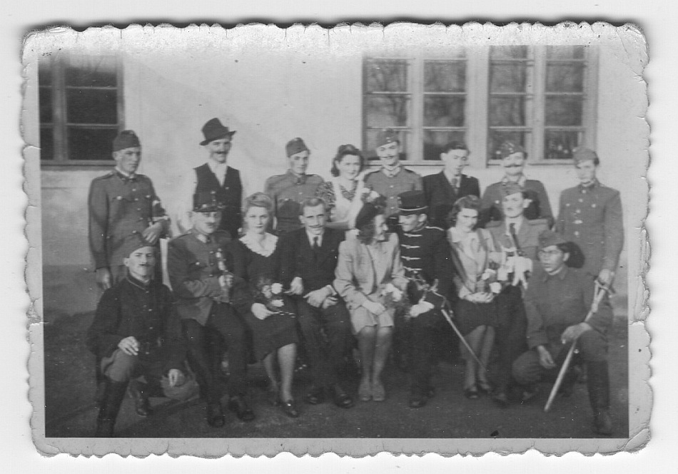 Nagybátyám - Nagy Ferenc volt a rendező és szerepelt is a színműben. Az átlagon felüli alakítással megdícsért Pénzes Gergely a szakdolgozatot író Pénzes Juditnak az Édesapja. Az én Édesapám - Nagy Dezső is szerepelt a darabban, amit legalább öt faluban sikerrel adtak elő. Végül itt egy családi emlékem. A szakdolgozatban is látható Gyöngyvirágos huszárcsákó színműről, amiben szintén szerepelt Édesapám ( álló sorban balról a harmadikként). |